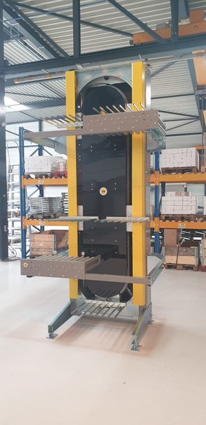 En fonction de l’application, pour monter ou descendre des charges en toute sécurité, Interroll propose également des solutions mécanisées, telles que des convoyeurs à bande de la gamme MCP, des élévateurs verticaux ou des convoyeurs spirales pour des colis jusqu’à 50 kg. Le débit et la gestion du flux sont parmi les critères importants dans la sélection du matériel adéquat. Par exemple, les convoyeurs à bande ou les élévateurs en spirale ne créeront pas de rupture dans le flux. Ces solutions dépendent également de l’espace au sol disponible et de la configuration initiale de l‘application. Pour les palettes jusqu’à 1000 kg, un élévateur vertical, type ascenseur, est également disponible.